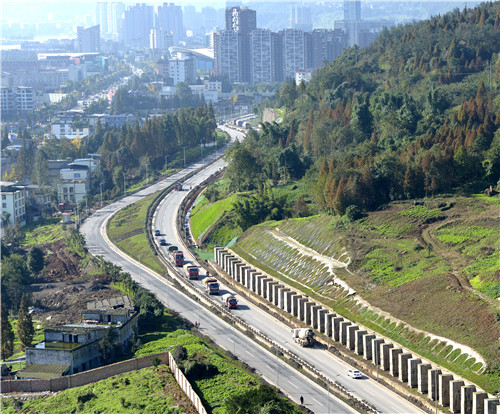 國(guó)道318線(xiàn)雅安至二郎山——雅安城區(qū)過(guò)境段(北外環(huán)線(xiàn))項(xiàng)目是“4·20”蘆山強(qiáng)烈地震災(zāi)后重建民生項(xiàng)目。該工程起于姚橋新區(qū)雅洪公路交叉口,東連省道305線(xiàn),沿光華山西側(cè)、金鳳山南側(cè)布置,穿青鼻山隧道,順碉堡山南側(cè)修建,止于康藏路西端,順接國(guó)道108線(xiàn)和318線(xiàn),道路全長(zhǎng)11.8公里,總投資11.96億元。道路設(shè)計(jì)為雙向4車(chē)道,設(shè)計(jì)時(shí)速60Km/h,,道路寬度從17米至49米不等。