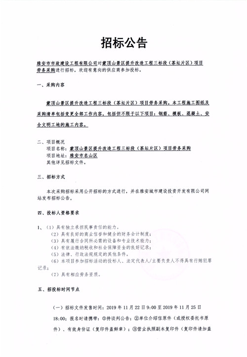 蒙頂山景區(qū)提升改造工程三標段(茶壇片區(qū))勞務(wù)采購項目招標公告