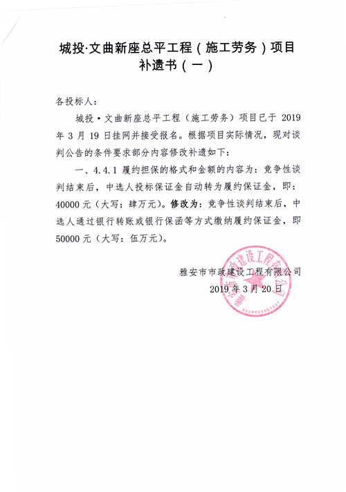 城投·文曲新座總平工程(施工勞務(wù))競爭性談判公告補遺一