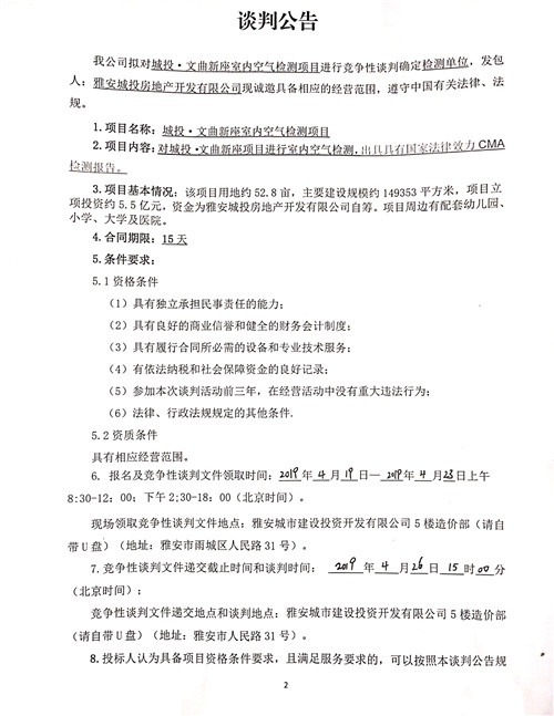 城投·文曲新座室內(nèi)空氣檢測(cè)項(xiàng)目競(jìng)爭(zhēng)性談判公告