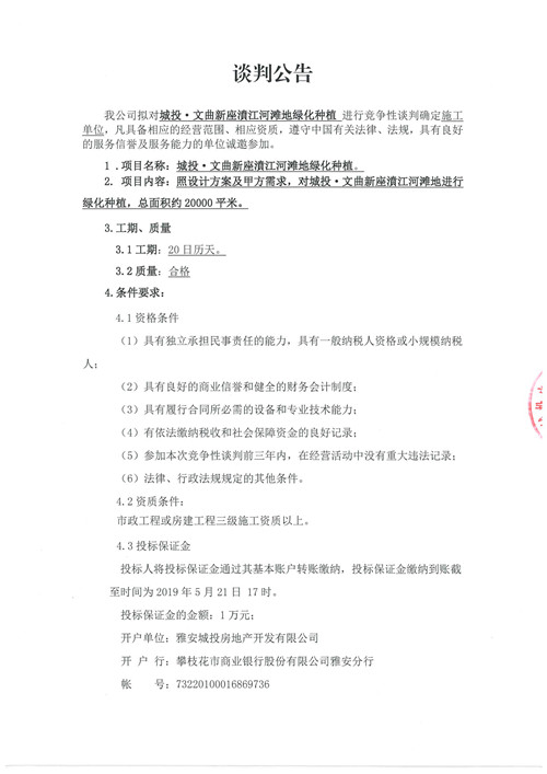 城投·文曲新座濆江河灘綠化種植競爭性談判公告