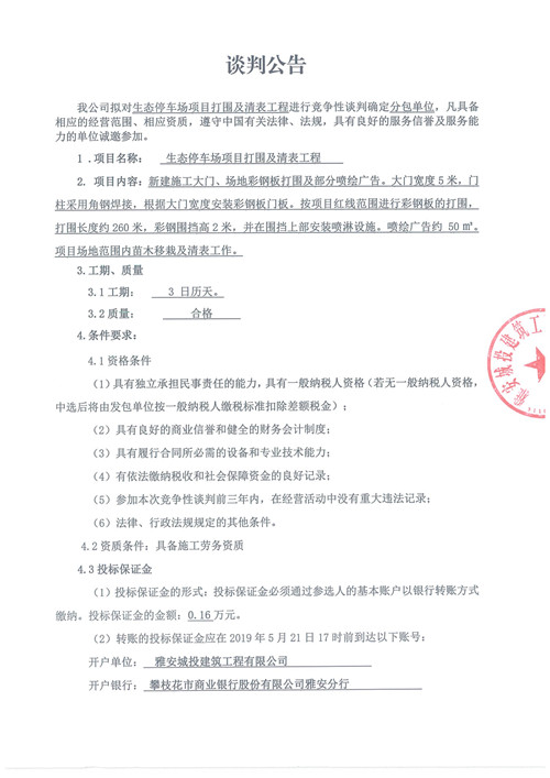 生態(tài)停車場項(xiàng)目打圍及清表工程競爭性談判公告