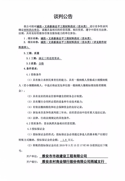 城投·文曲新座總平工程材料供應(yīng)(苗木類)競爭性談判公告