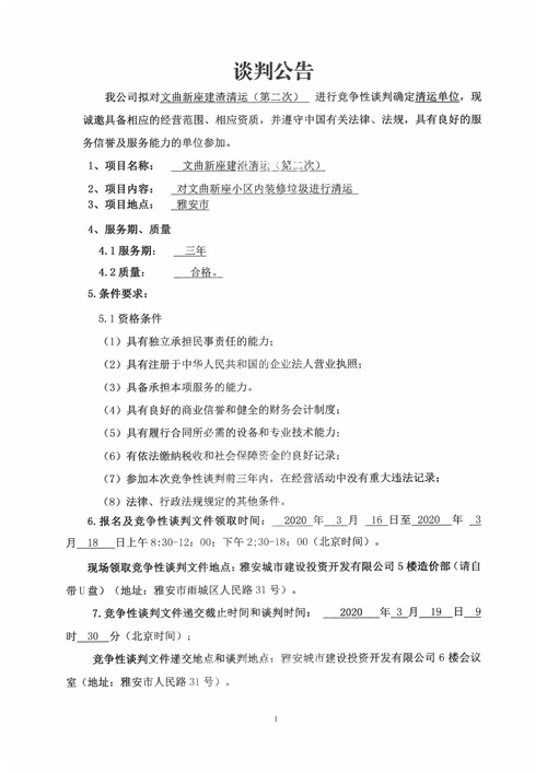 城投物業(yè)公司文曲新座建渣清運(第二次)競爭性談判公告