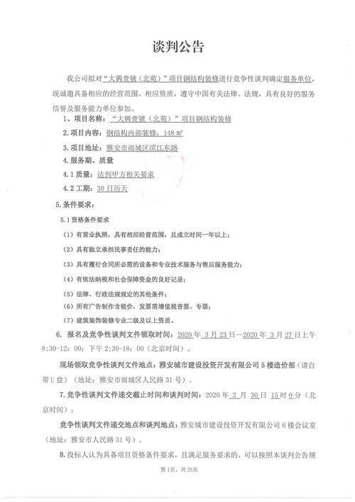 城投建工“大興壹號(北苑)”項(xiàng)目鋼結(jié)構(gòu)裝修競爭性談判公告