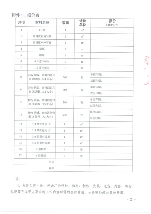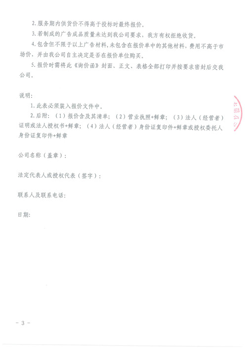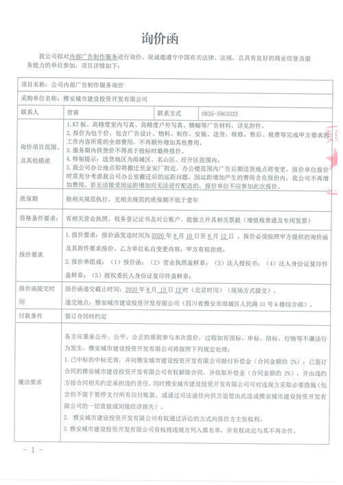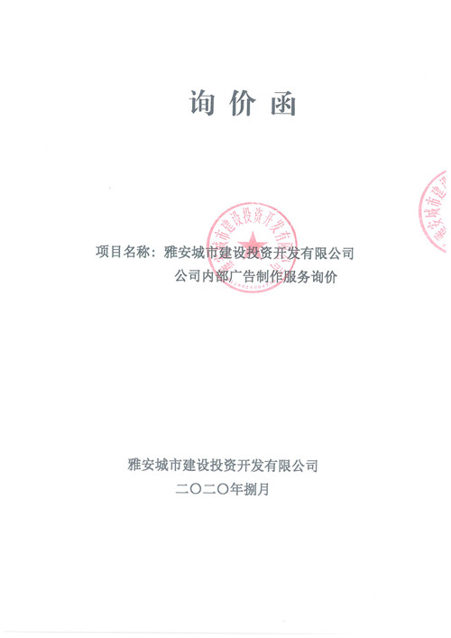雅安城市建設投資開發(fā)有限公司公司內部廣告制作服務詢價函