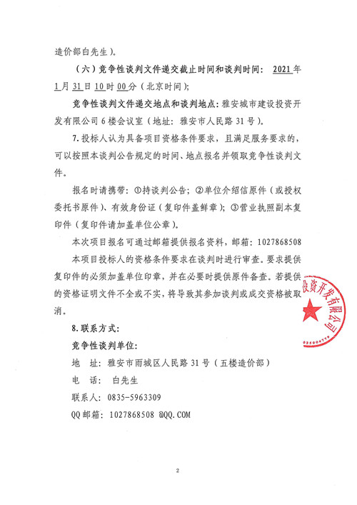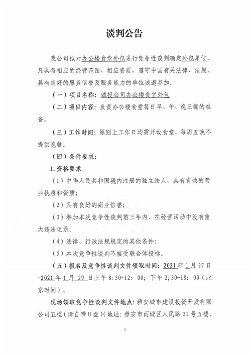 雅安城市建設(shè)投資開發(fā)有限公司辦公樓食堂外包競爭性談判公告