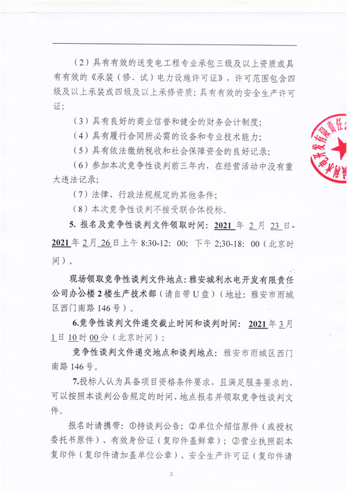 城利水電公司10kV禁壩線安全提升改造工程競(jìng)爭(zhēng)性談判公告