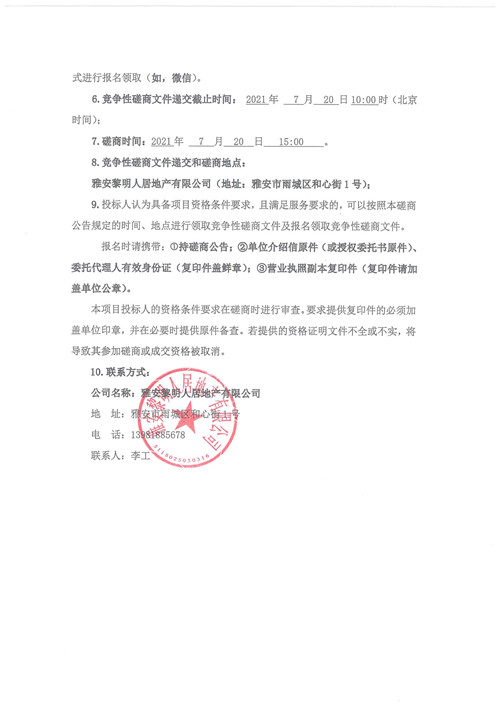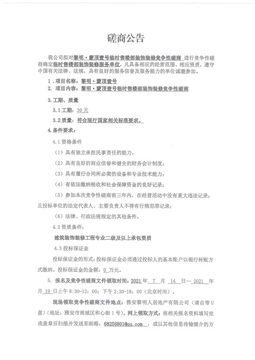黎明人居公司黎明·蒙頂壹號臨時(shí)售樓部裝飾裝修競爭性磋商公告