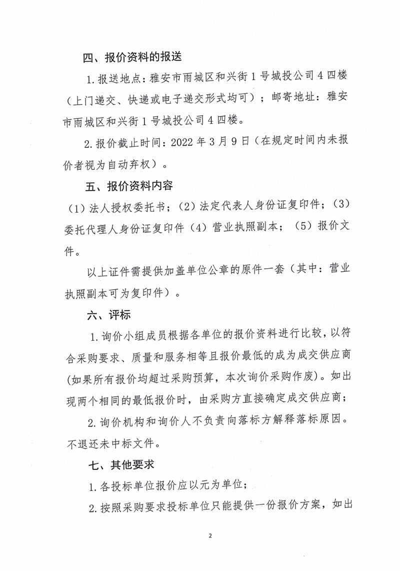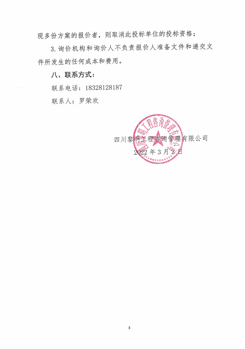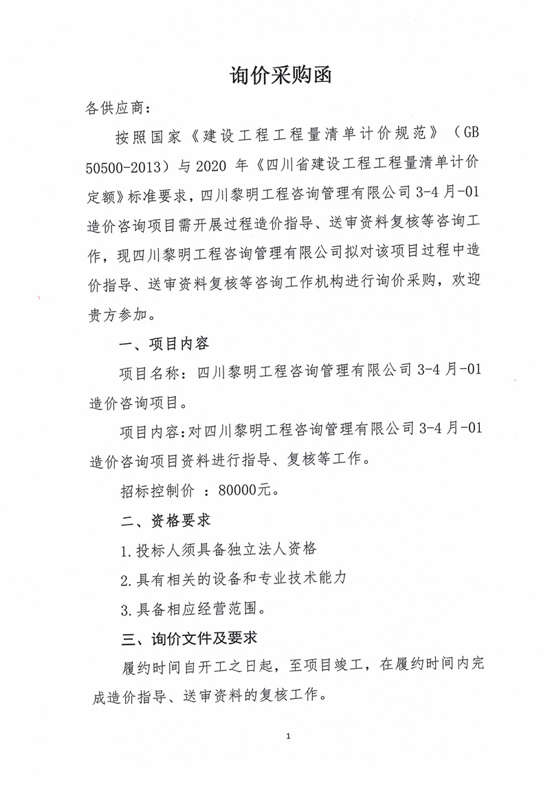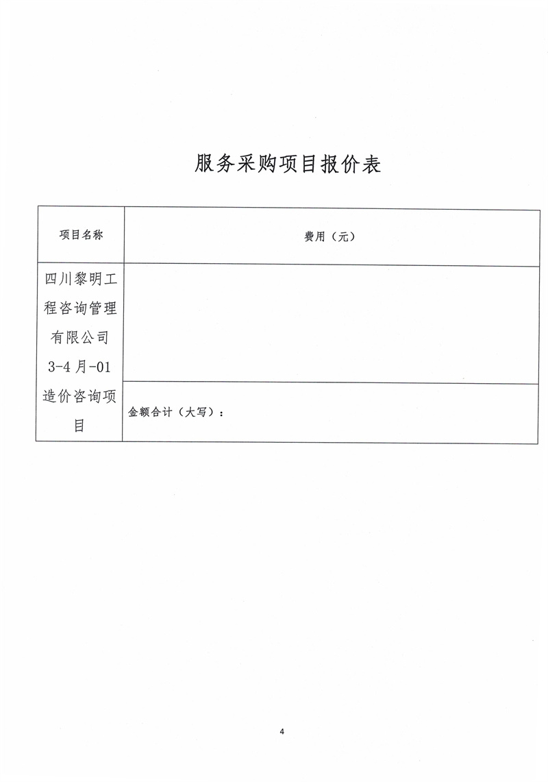 四川黎明工程咨詢管理有限公司3-4月-01造價咨詢項目詢價采購函