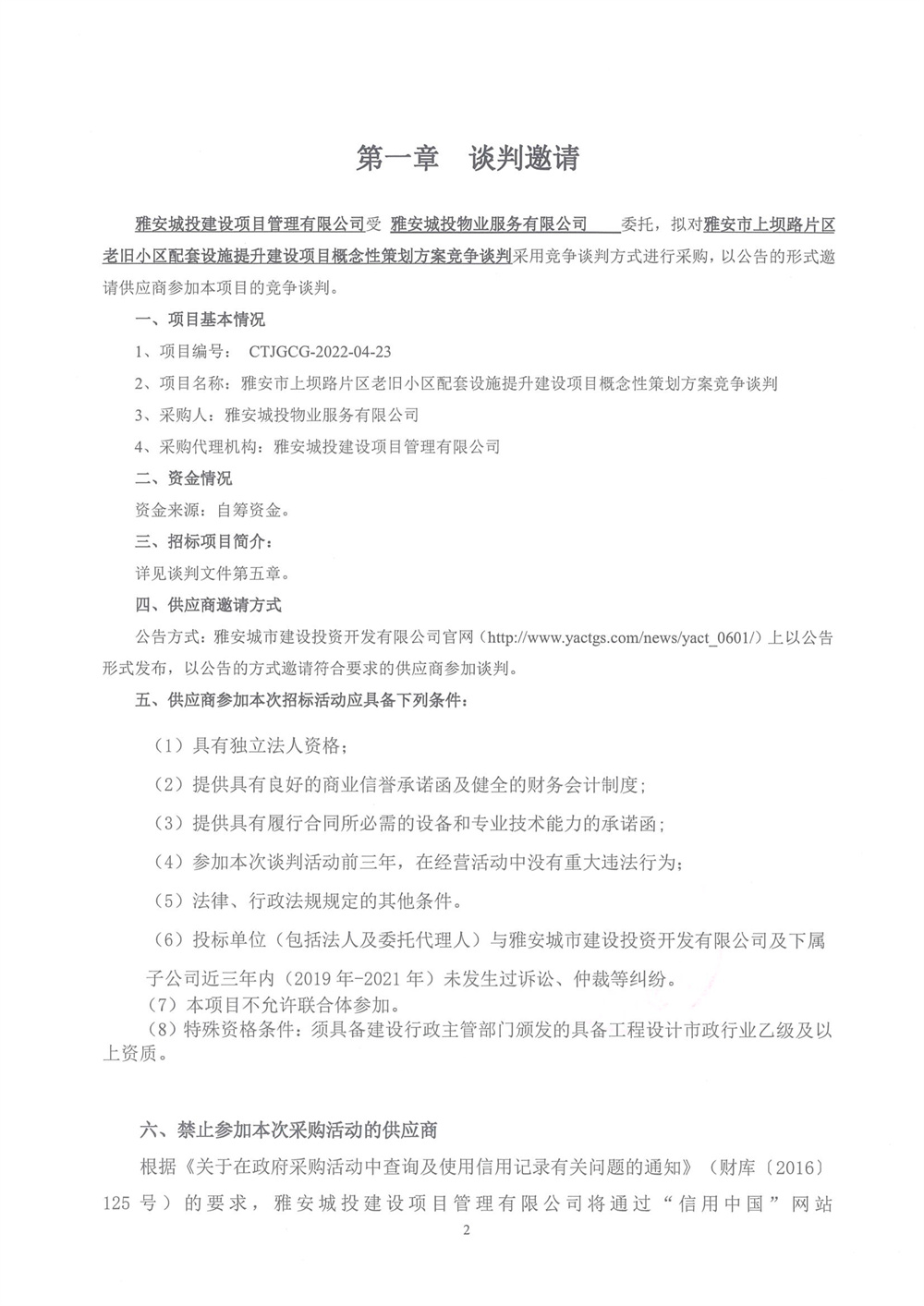 雅安市上壩路片區(qū)老舊小區(qū)配套設施提示建設項目概念性策劃方案競爭談判邀請