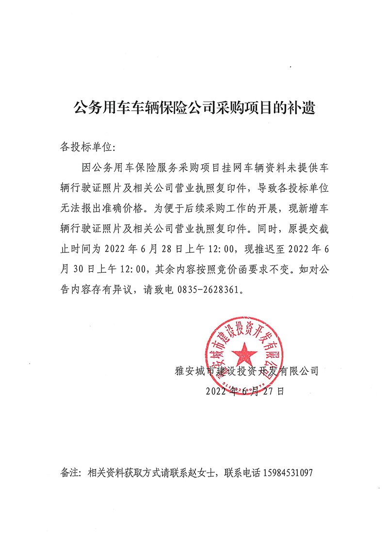 公務(wù)用車車輛保險(xiǎn)公司采購項(xiàng)目的補(bǔ)遺