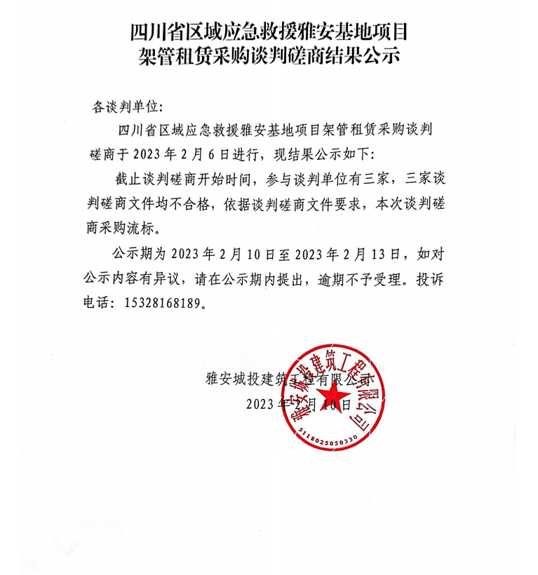 四川省區(qū)域應(yīng)急救援雅安基地項(xiàng)目架管租賃采購談判磋商結(jié)果公示