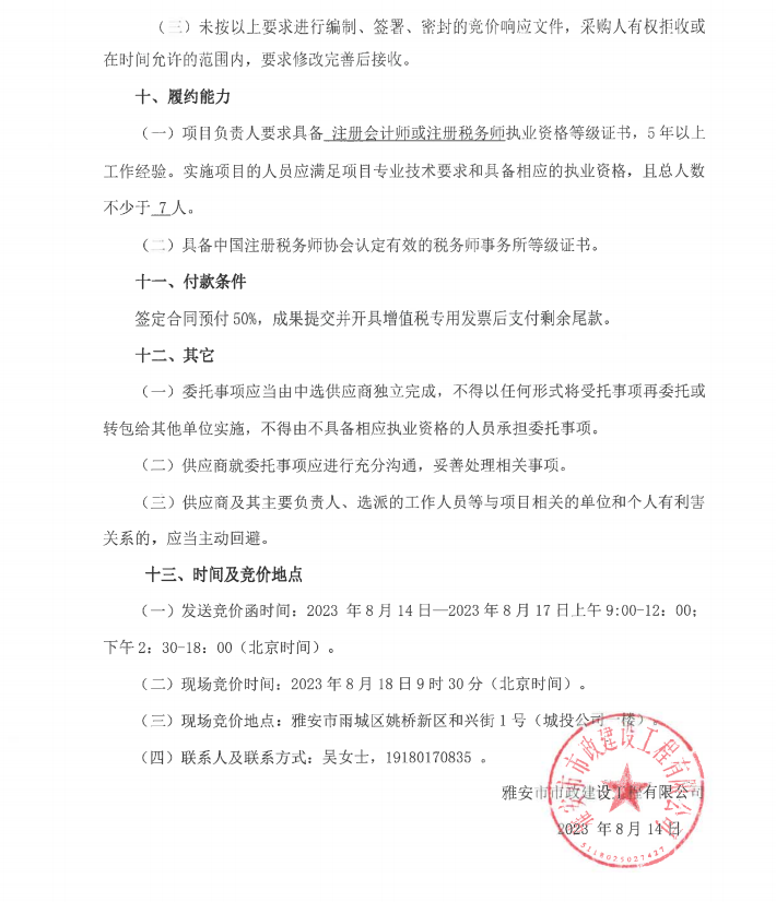 市政公司增值稅清理專項服務采購需求書