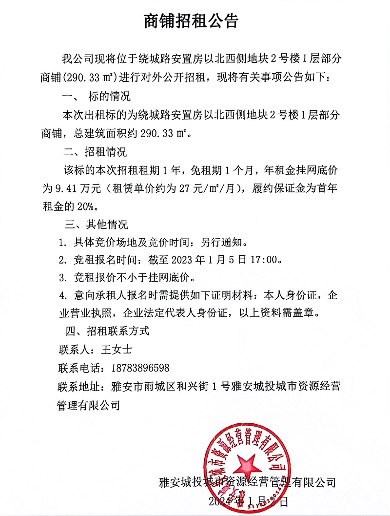繞城路安置房以北西側(cè)地塊2號樓1層部分商鋪招租公告