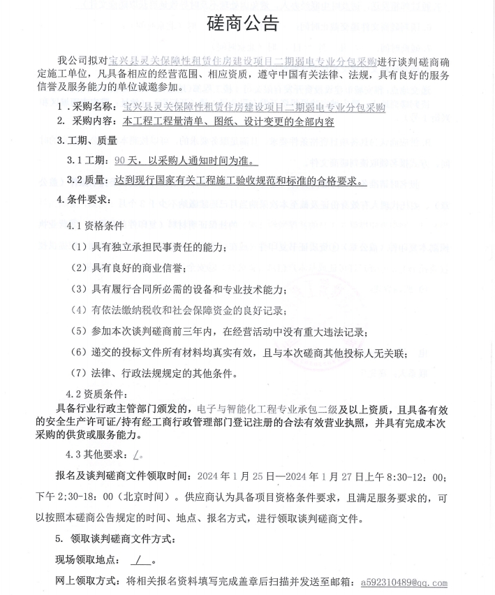 寶興縣靈關(guān)鎮(zhèn)保障性住房建設(shè)項目二期弱電專業(yè)分包采購磋商公告