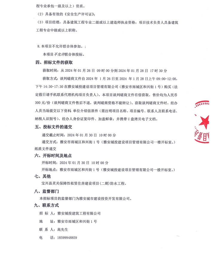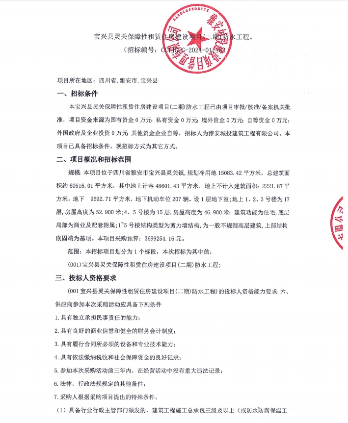 寶興縣靈關(guān)保障性租賃住房建設(shè)項(xiàng)目(二期)防水工程公告