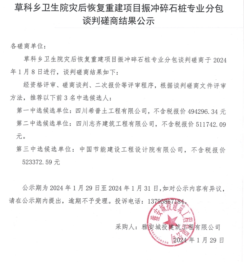 草科鄉(xiāng)衛(wèi)生院災(zāi)后恢復(fù)重建項(xiàng)目振沖碎石樁專業(yè)分包談判磋商結(jié)果公示
