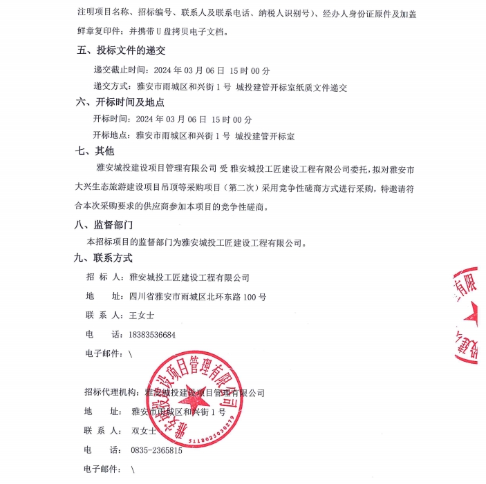 雅安市大興生態(tài)旅游建設(shè)項(xiàng)目吊頂?shù)炔少忢?xiàng)目(第二次)公告