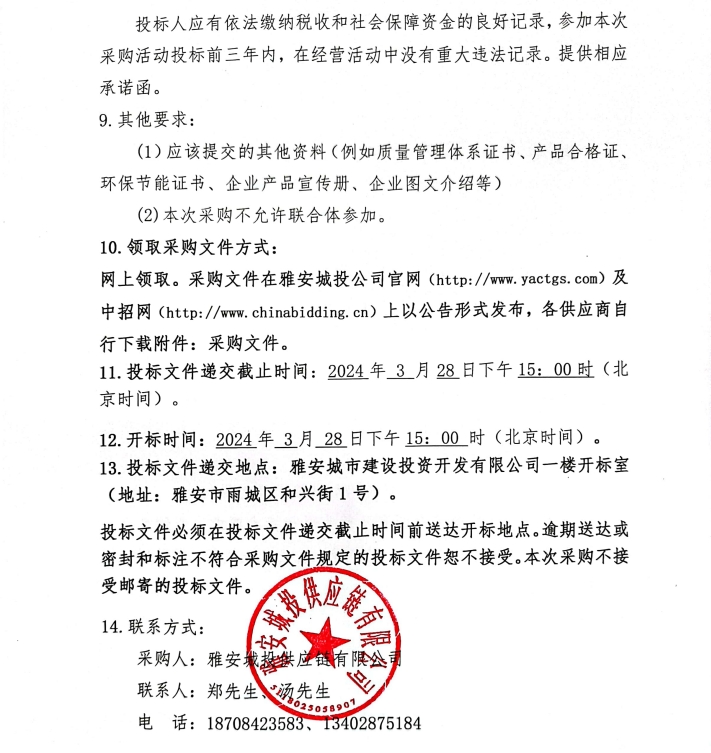 附件:采購文件--2024年3月-2025年2月雅安城投供應鏈有限公司鋼材集中采購