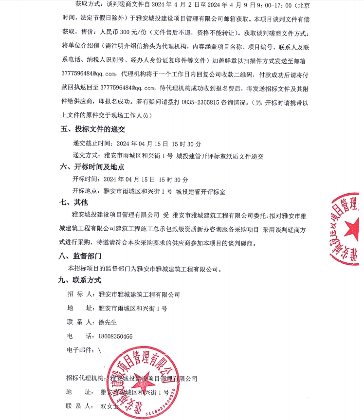 雅安市雅城建筑工程有限公司建筑工程施工總承包貳級(jí)資質(zhì)新辦咨詢(xún)服務(wù)采購(gòu)項(xiàng)目公告