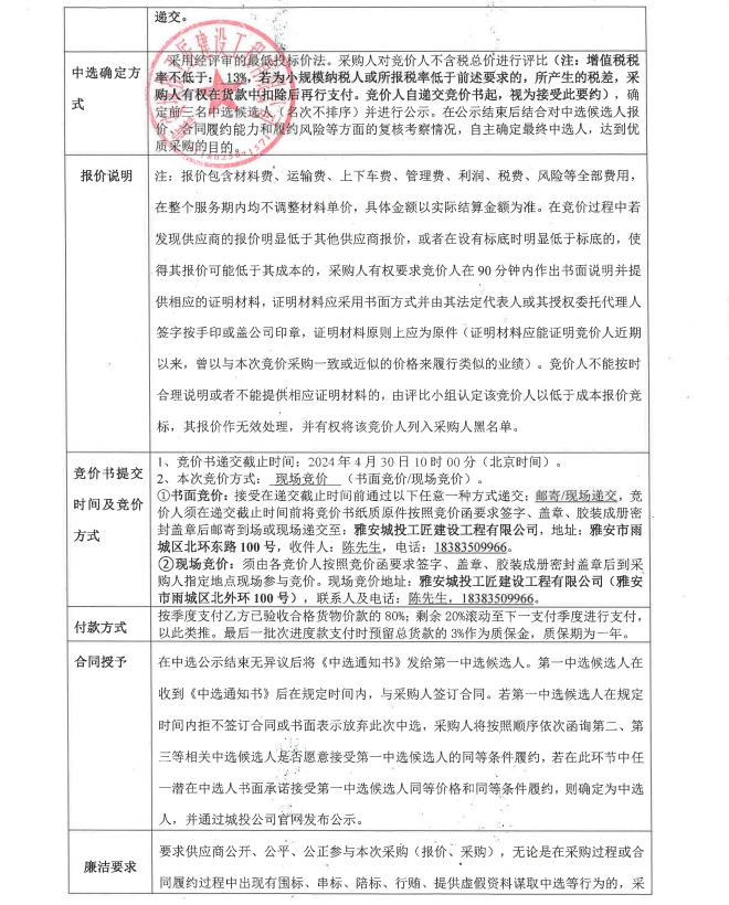 雅安市大興生態(tài)旅游建設(shè)項目4號地塊水系水池一體化水泵站材料采購競價公告