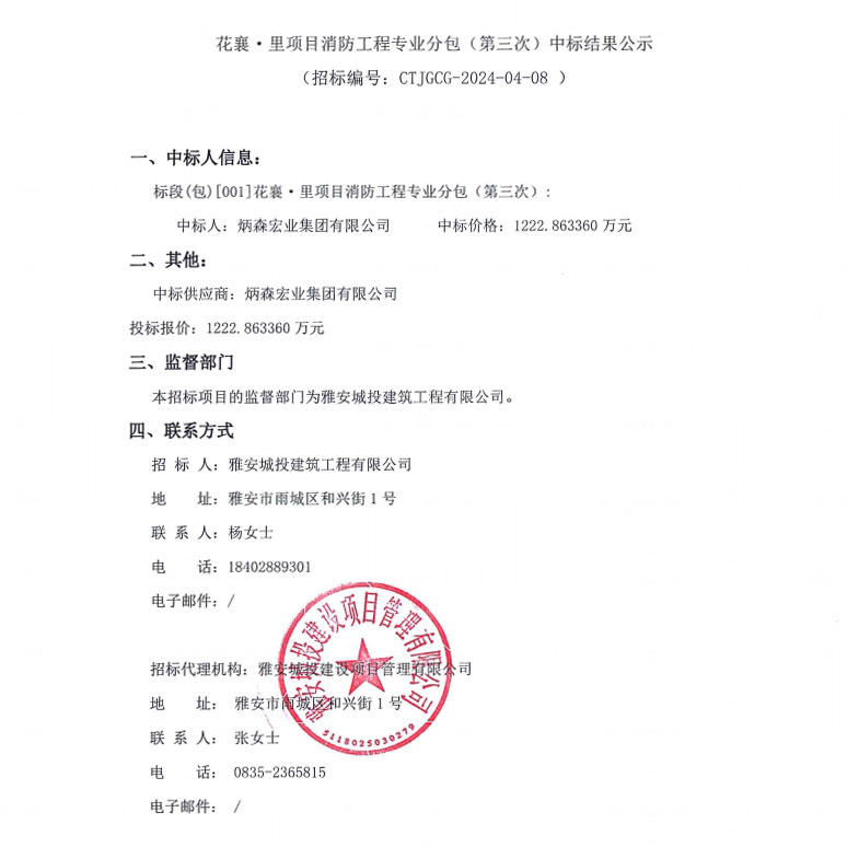 花襄·里項(xiàng)目消防工程專業(yè)分包(第三次)中標(biāo)結(jié)果公示