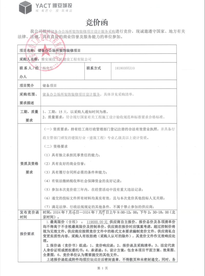 儲(chǔ)備辦公場(chǎng)所裝飾裝修項(xiàng)目競價(jià)公告