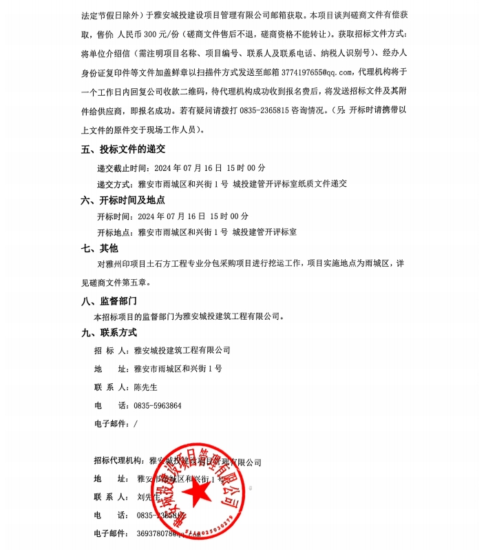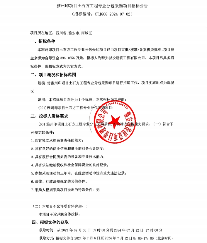 雅州印項(xiàng)目土石工程專業(yè)分包采購項(xiàng)目招標(biāo)公告