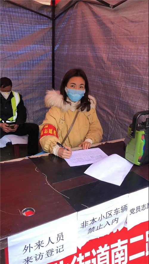 城投·市政公司彭莉娟在河北街道南二路社區(qū)新冠肺炎防控點(diǎn)值守