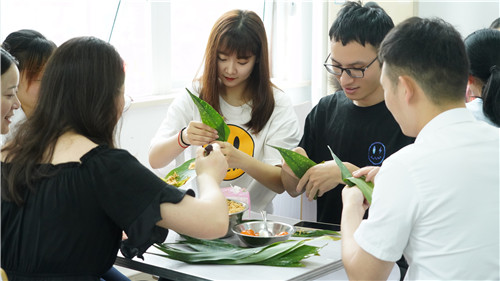包粽子比賽中,各代表隊(duì)各顯神通,一卷一疊、填料、扎捆,巧手翻飛,一只只粽子瞬間成形,不會(huì)包的同志也在包粽子能手的指導(dǎo)下,慢慢掌握了包粽子的技巧。
